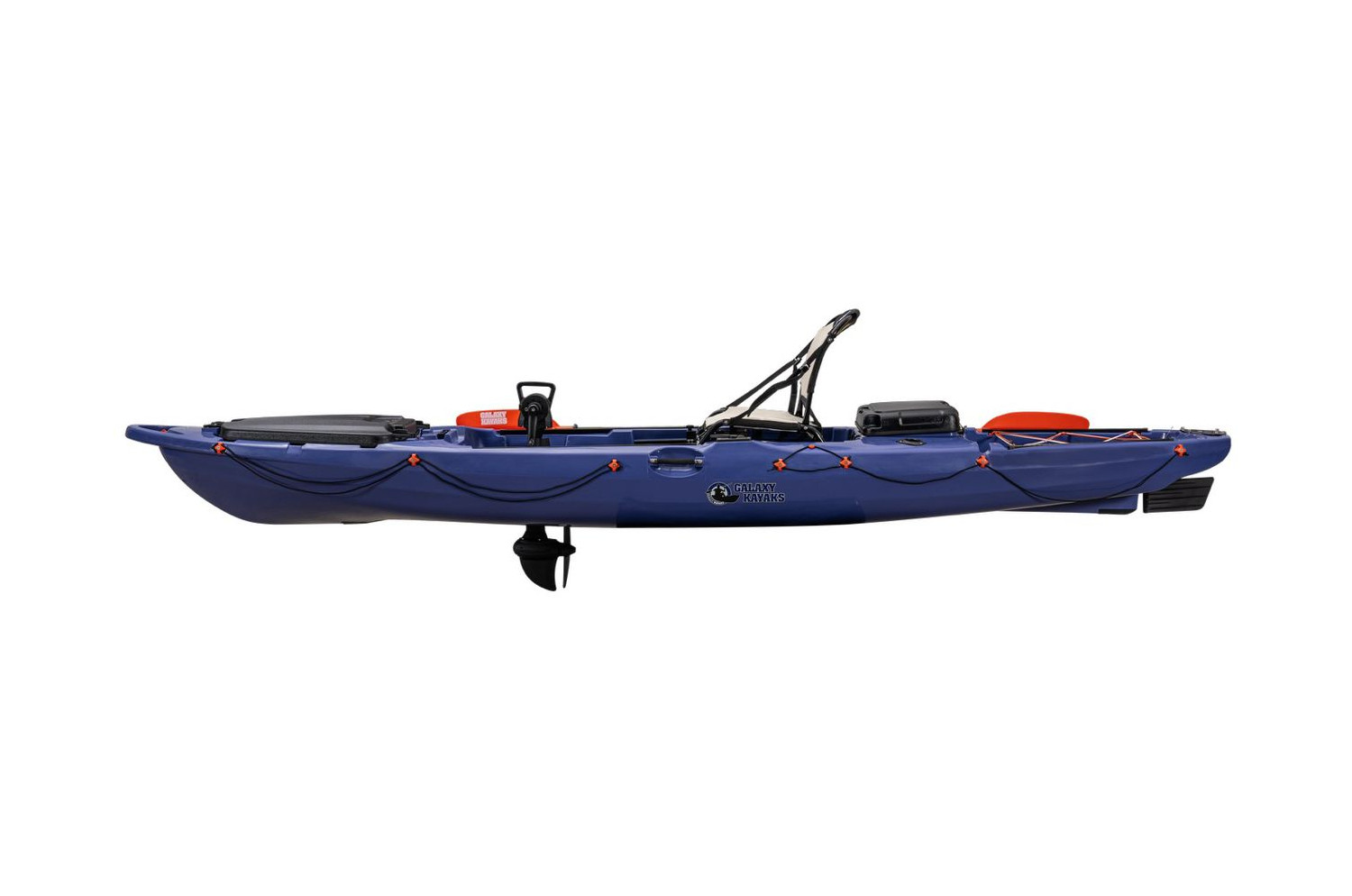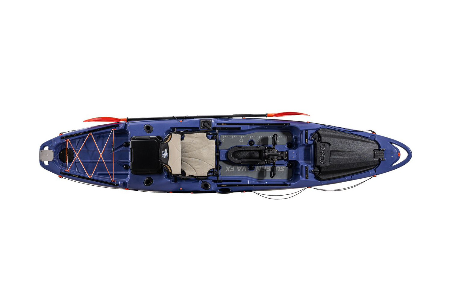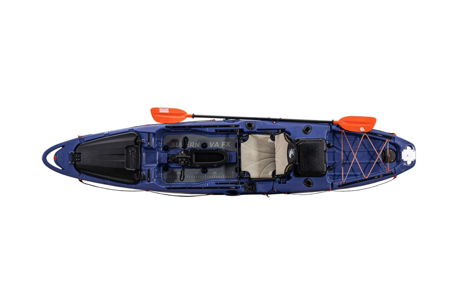 The new Galaxy Supernova FX comes with the option to power your kayak with either our new Cyclone pedal drive, Torqeedo motor, or your trusty paddle. Our designers worked closely with our pro-team and customer feedback to bring you a new version of this model full of great features.